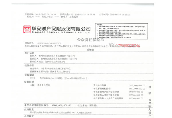 100万公众责任险