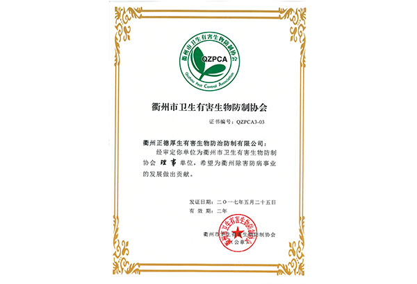 江德宜居环境科技有限公司Cؓ(f)江省除四害U技协会(x)AU资质,同时也是江省除四害U技协会(x)?x)员单位、中国有害生物防制协?x)?x)员单位,是国内专业从事虫x制管理(PMPQ技术与理念的专业虫害管理公怹一?/p>